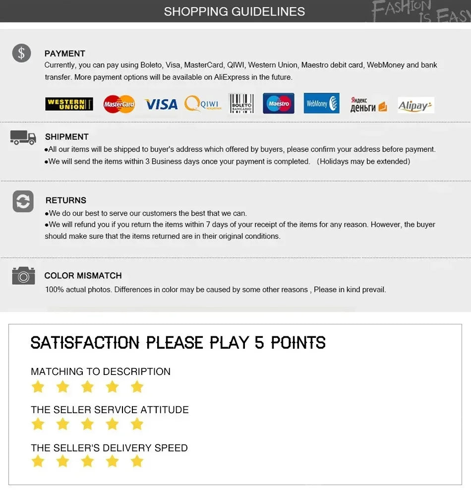 6. Transparent Policies: Our clear return, refund, and shipping policies provide peace of mind, knowing we stand behind our products.